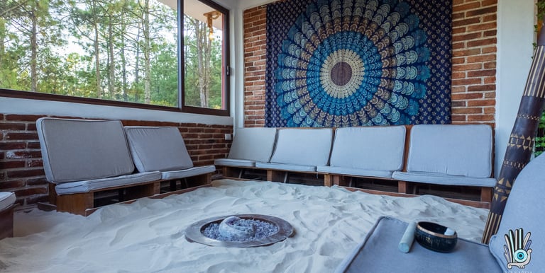 Nuestro temazcal ancestral ofrece una ceremonia guiada que purifica cuerpo y mente a través del vapor de hierbas y el calor de las piedras volcánicas, invitándote a liberar tensiones y renovar tu energía en un entorno íntimo y natural.